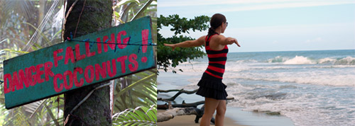 2. deň- po tom ako sa Peťo naučil ako zúžitkovať kokosy (ktorých je všade asi miliarda), sme vedeli, že prežijeme, aj keby sa stratíme a okradnú nás. Nasadli sme na bicykle a užívali si cestu hotovou botanickou záhradou na jednu z krásnych pláží. Cestu nám spríjemňoval spevokol rôznych živočíšnych tvorov a cestou späť sa nám podarilo zazrieť aj našich predchodcov- opice