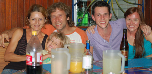 Na záver fotka nás a Peťovej kostarickej rodiny. A čo vám napísať k môjmu opáleniu? Hmm...áno, nosiť slnečné okuliare sa niekedy nevypláca